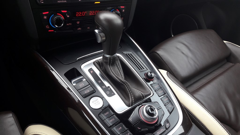 – Kierownica, gałka i osłona dźwigni skrzyni biegów obszyte skórą Audi exclusive