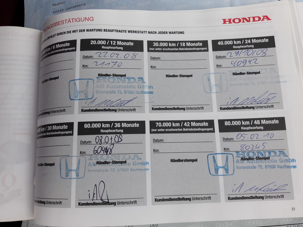 Na bieżąco serwisowany tylko i wyłącznie w ASO Honda. Posiadamy książkę serwisową, dokument okresowych przeglądów Dekra.