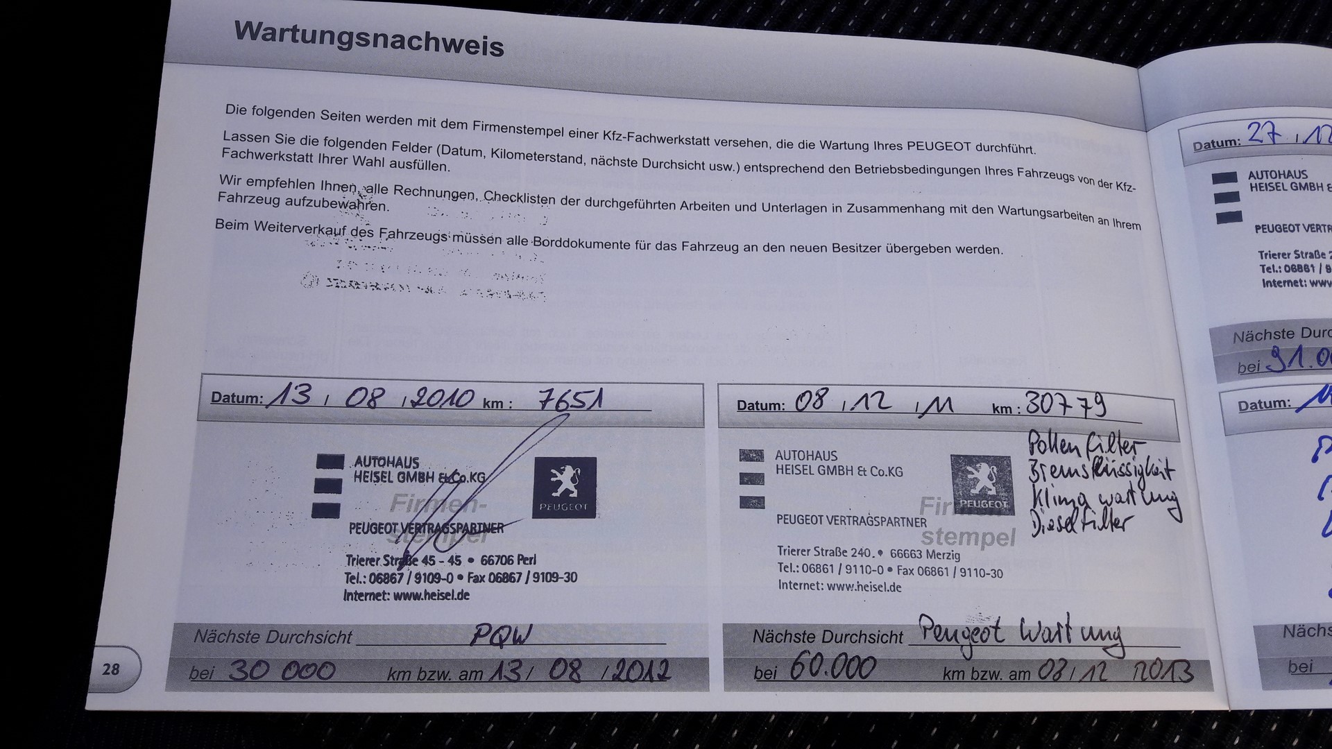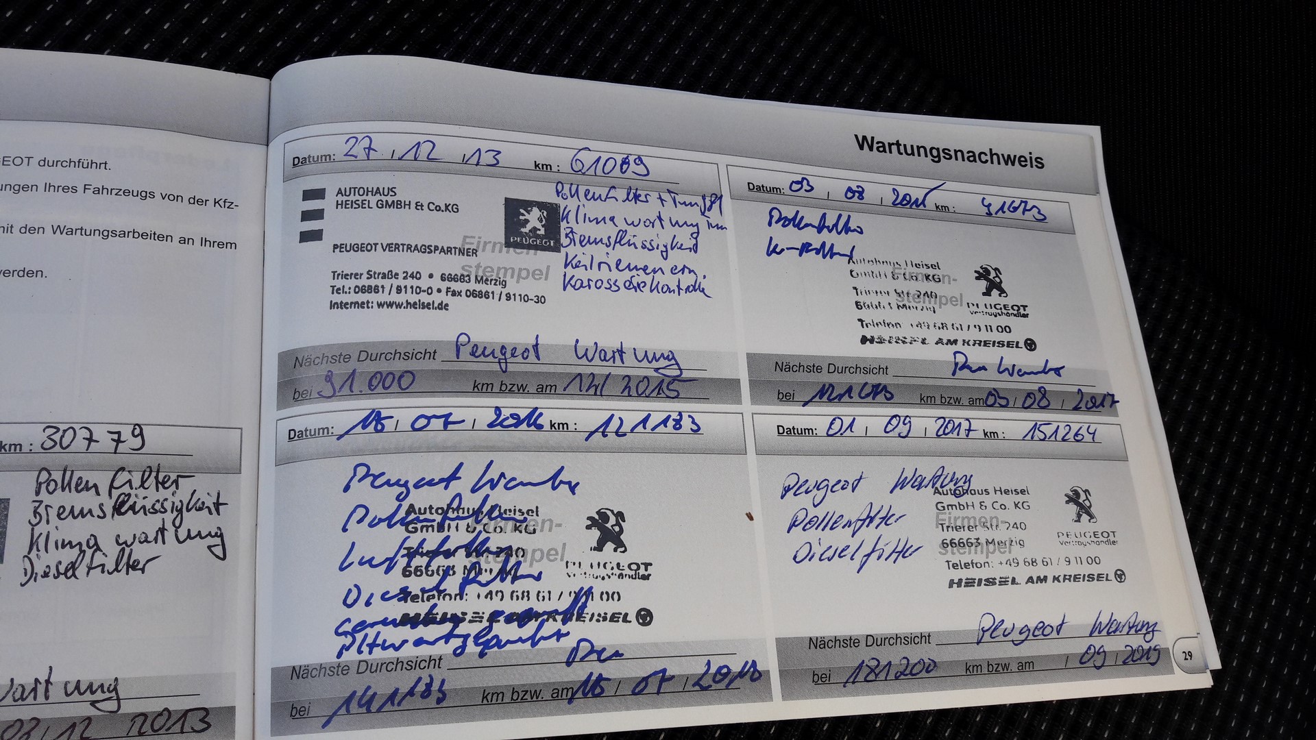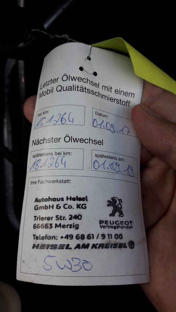 Auto na bieżąco serwisowane tylko i wyłącznie w ASO Peugeot – na zdjęciach widoczna jest książka serwisowa z wpisami.