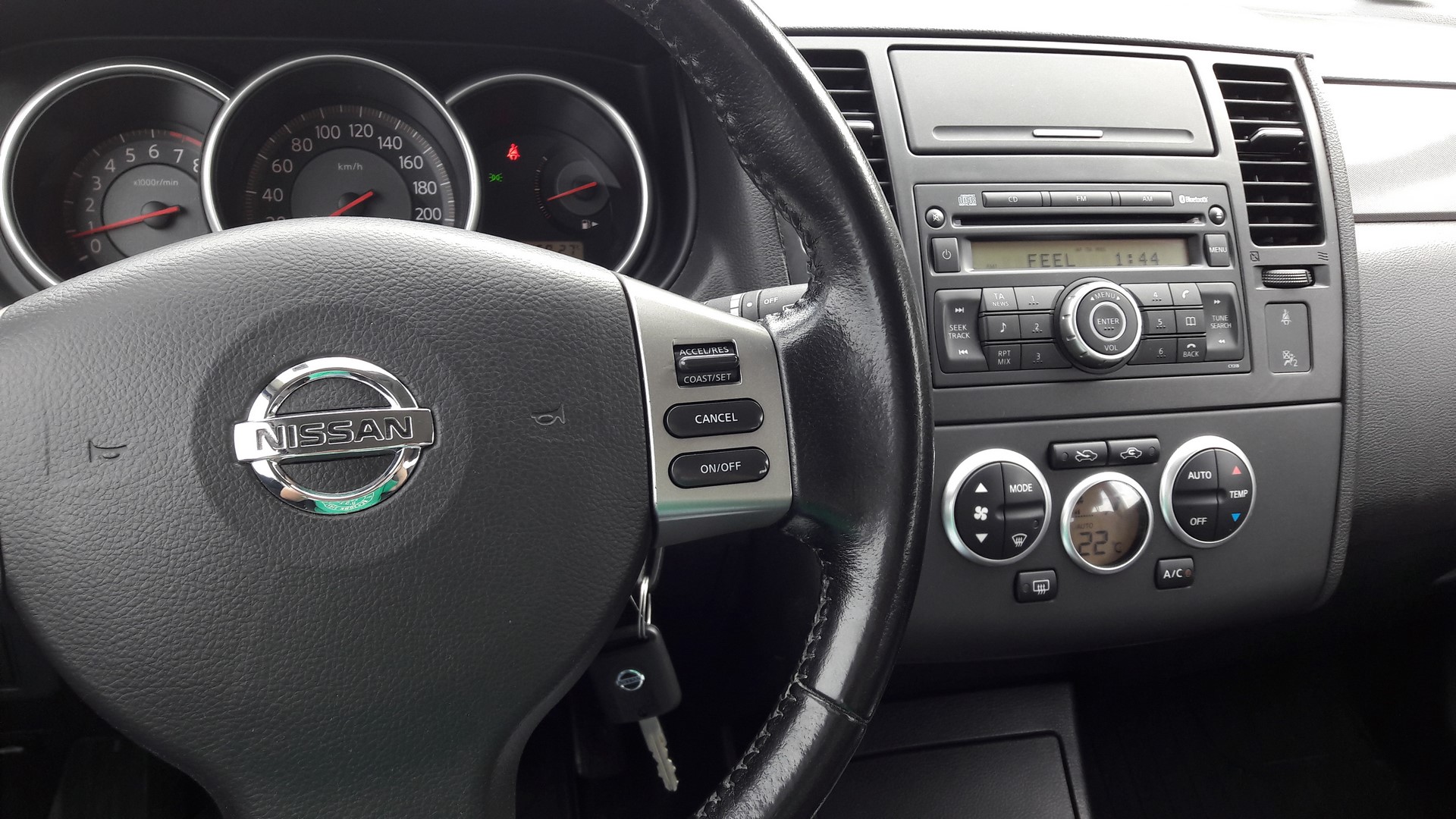 Nissan Tiida 1.6 benzyna 110KM, 5 biegowa skrzynia manualna.