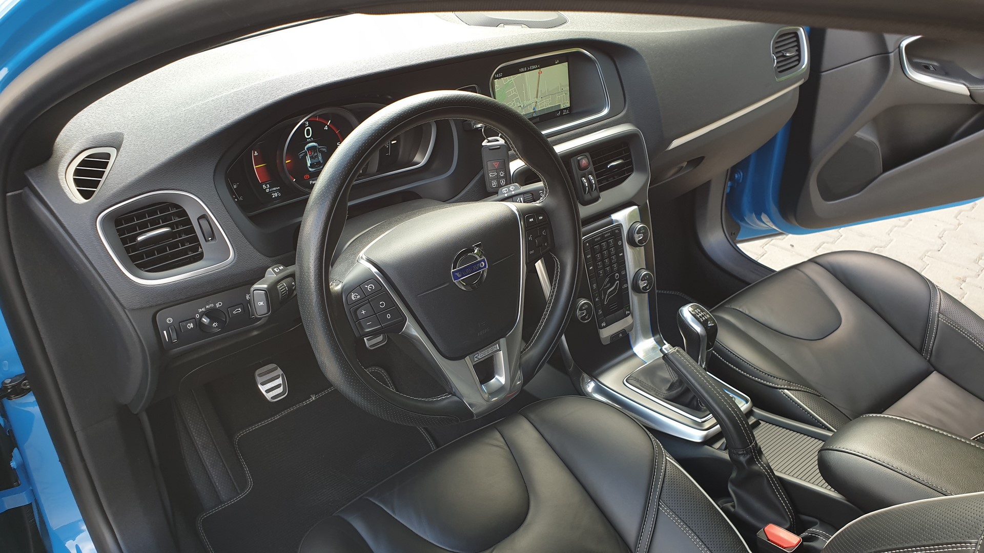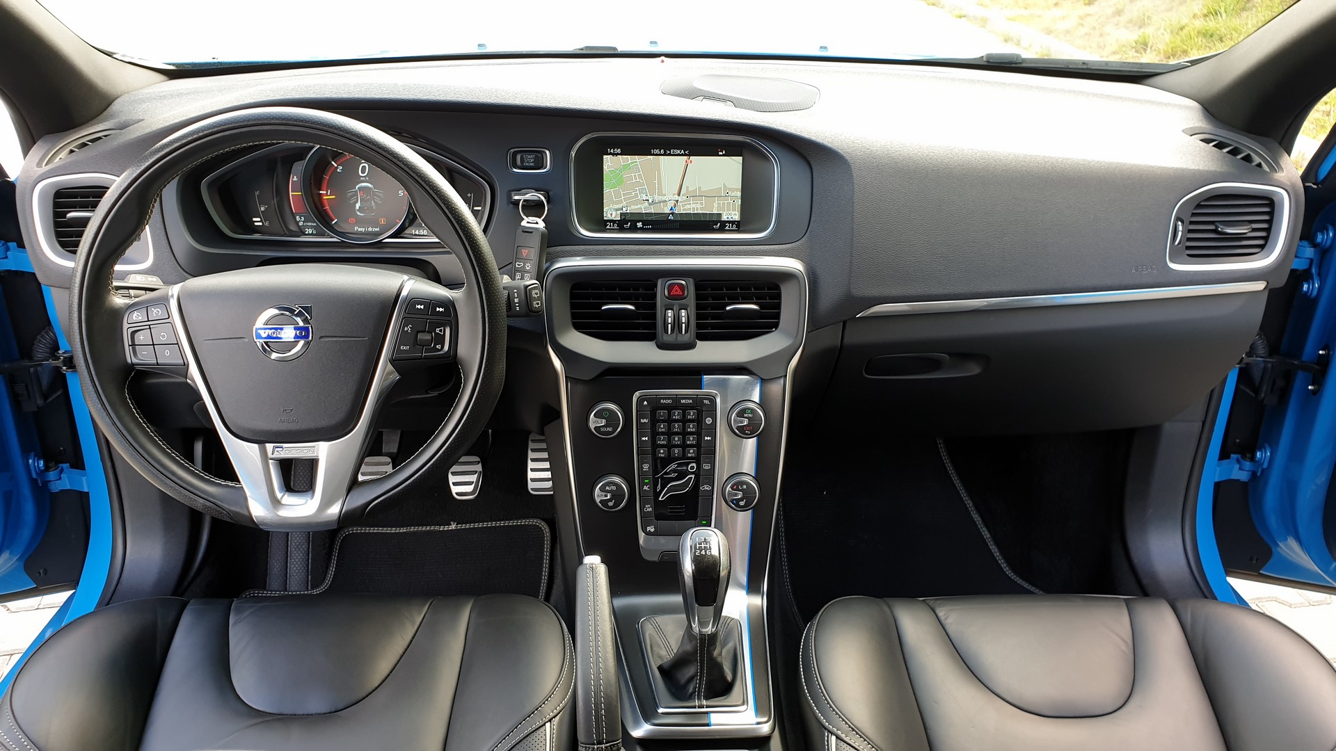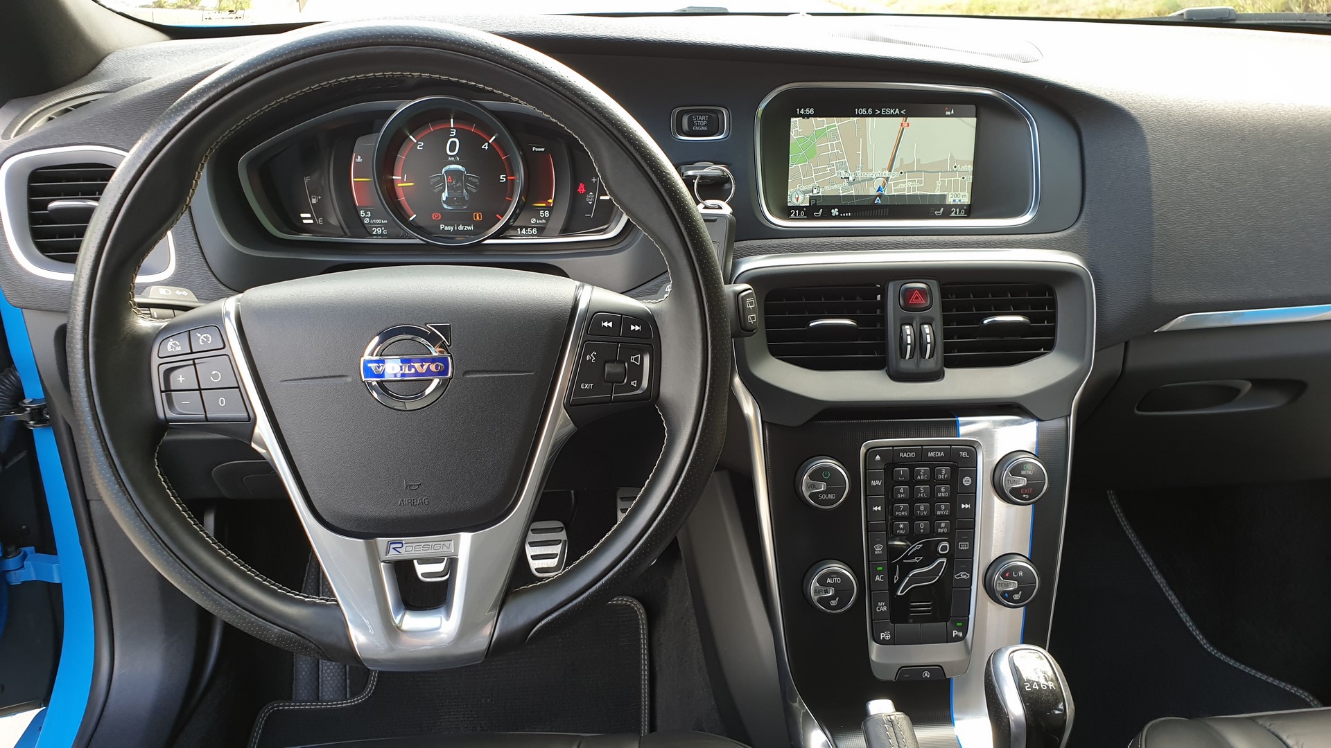 Bogata wersja wyposażenia – R-Design + dodatki tj. asystent parkowania, kamera cofania, nagłośnienie Harman Kardon i wiele innych.
