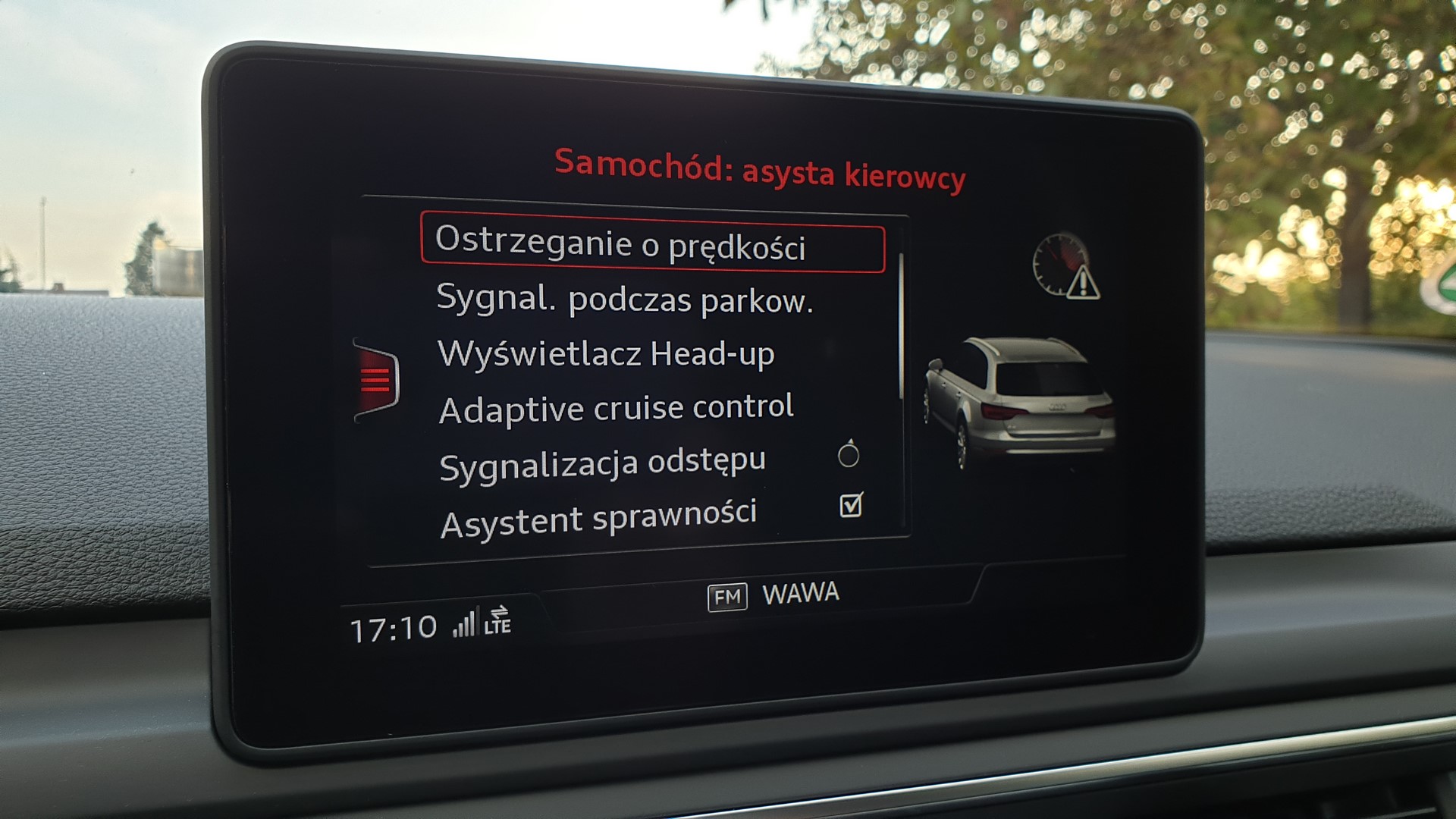 – wyświetlacz przezierny – wyświetla na szybie prędkość, znaki, ograniczenia, itp.