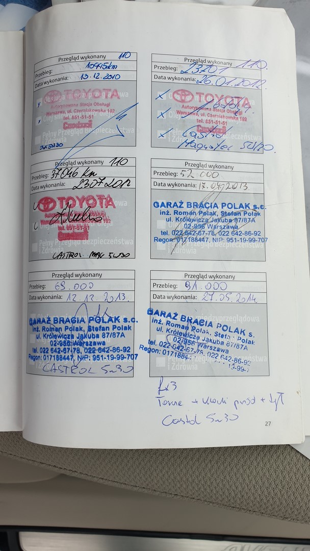 Na bieżąco serwisowane w ASO Toyota.