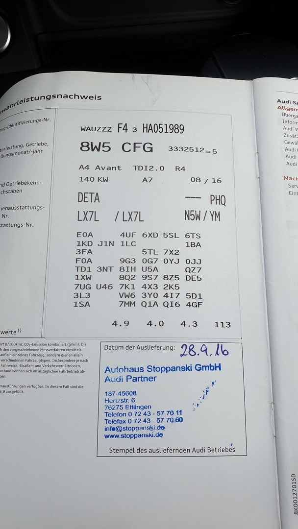 Audi A4 2.0 diesel 190KM, 7 biegowa skrzynia automatyczna.