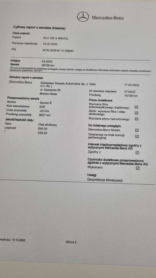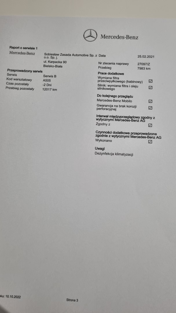 Możliwość zweryfikowania stanu auta w dowolnym autoryzowanym serwisie Mercedesa na terenie Warszawy.