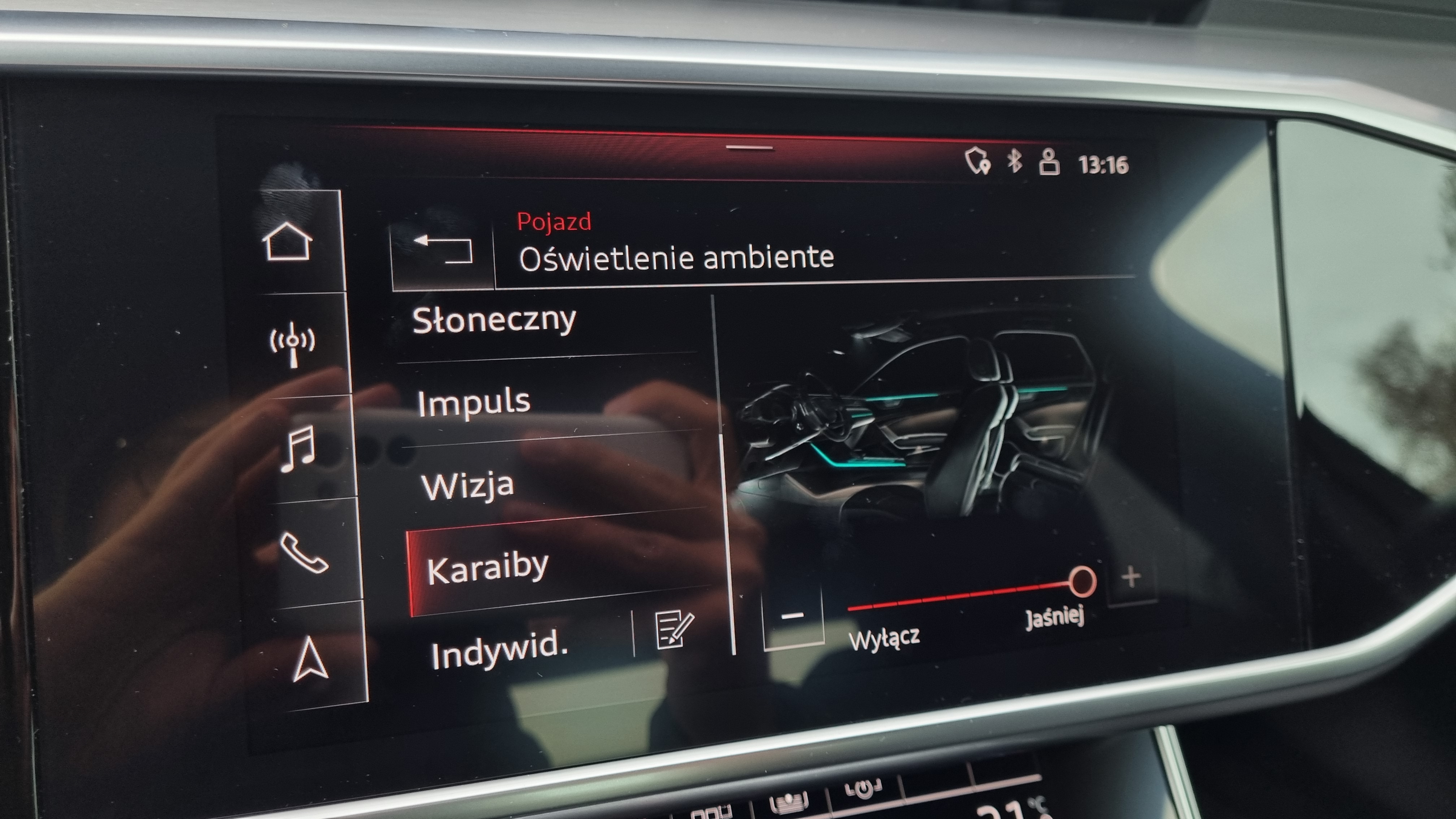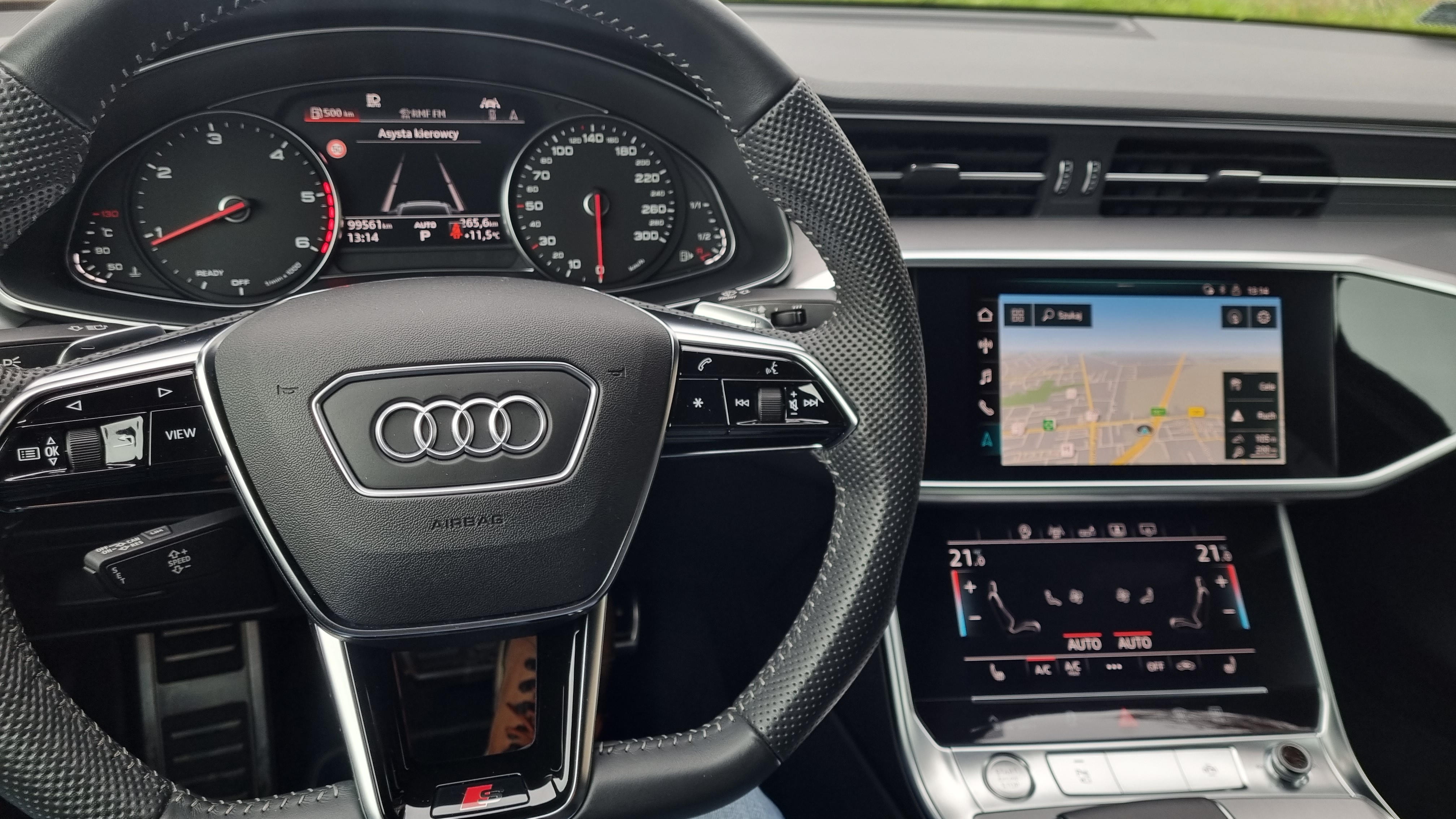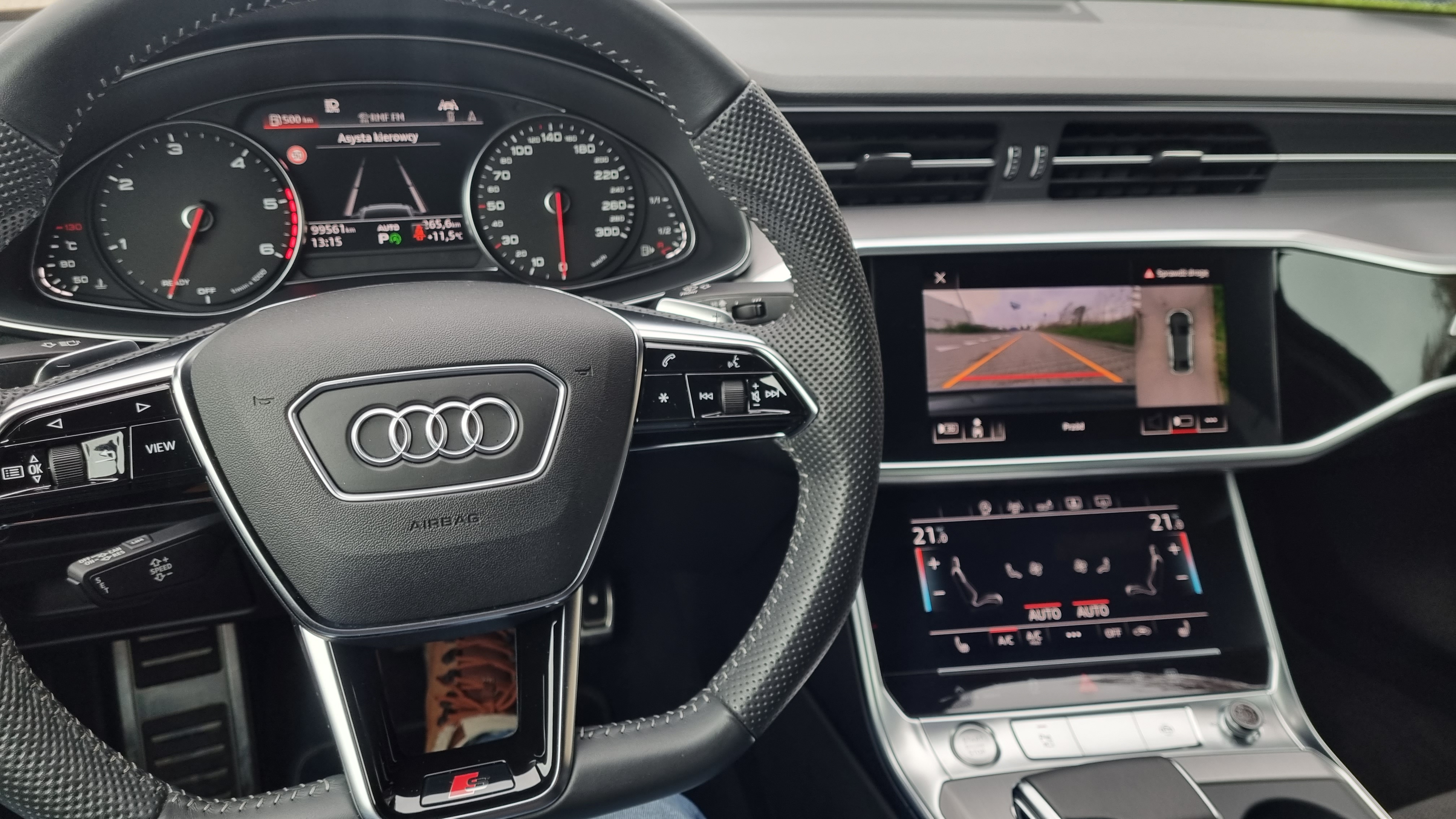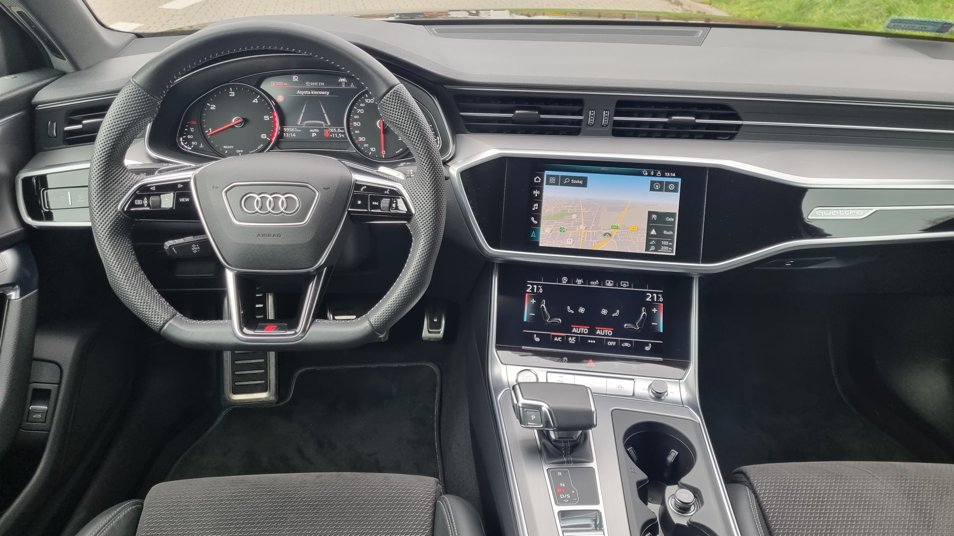 Pełny pakiet S-Line z licznymi dodatkami, m.in.: reflektory Matrix, Kamera 360, Audi drive select, Alkantara, rolety tylnych szyb, domykanie drzwi, pamięć fotela kierowcy, 4 strefowy klimatronik, oświetlenie Ambient, 20 calowe felgi aluminiowe, pakiet optyczny czerń, elektryczna tylna klapa i wiele innych.