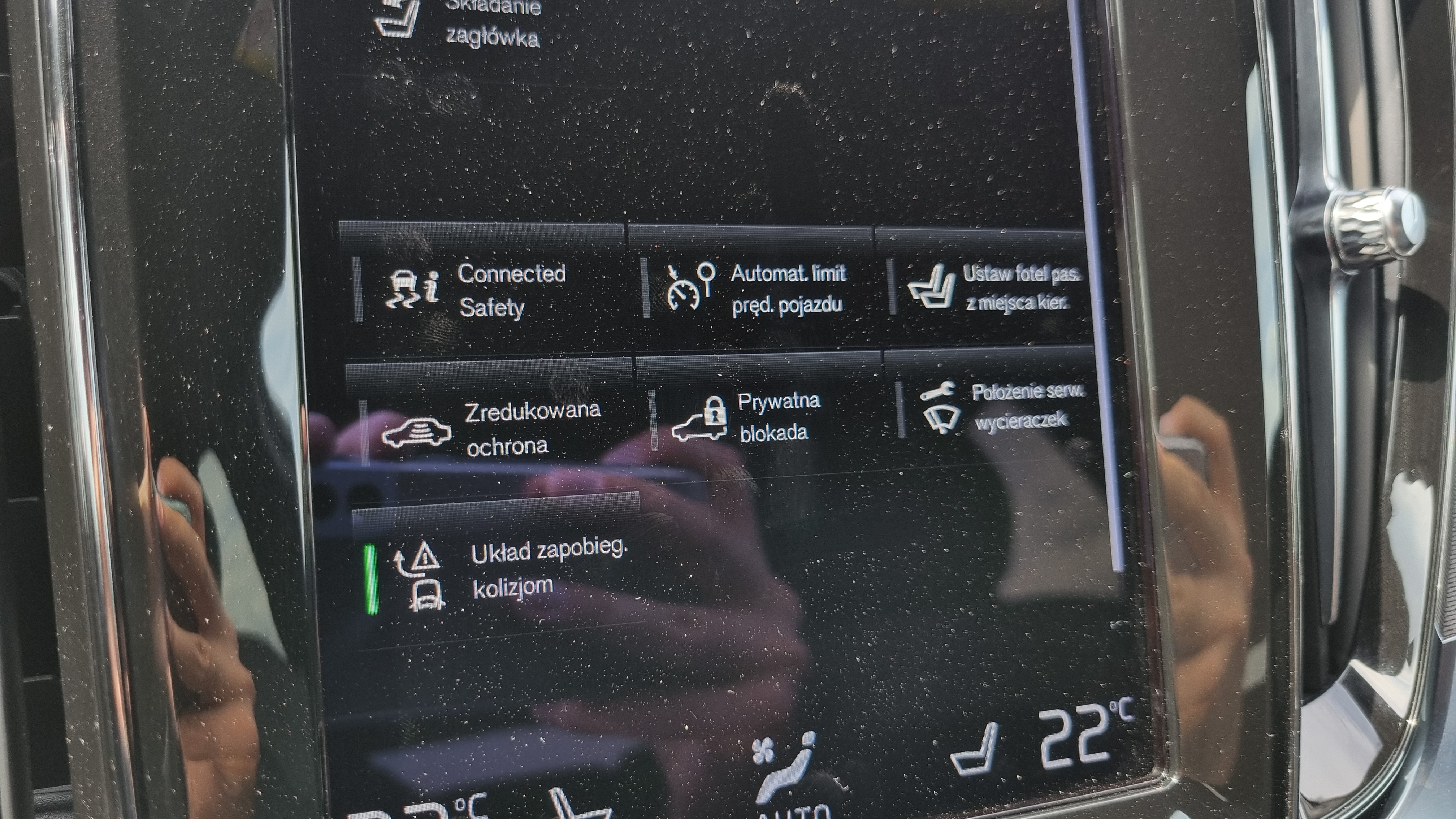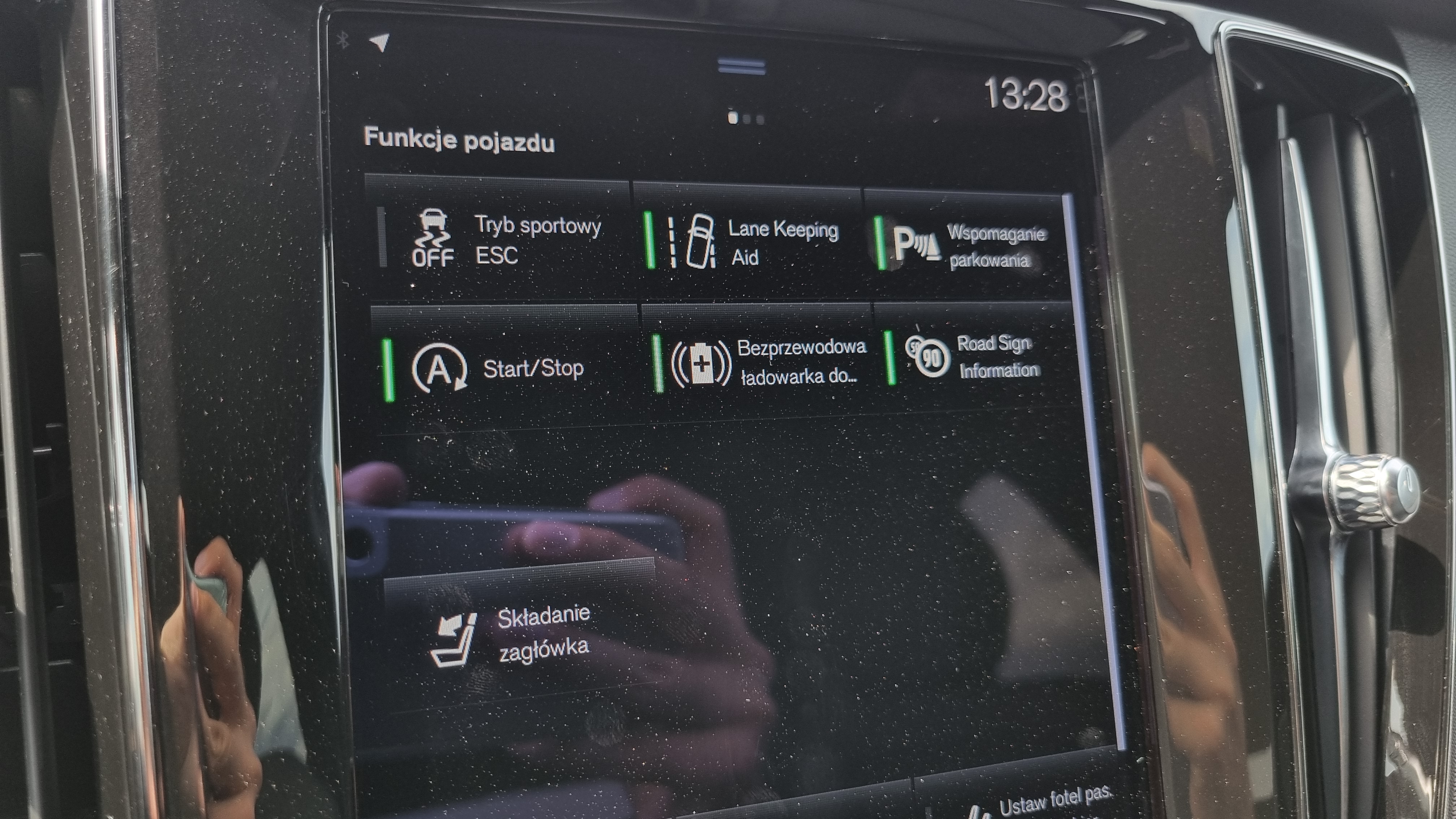 Elektrycznie składane zagłówki foteli tylnych z wyświetlacza centralnego